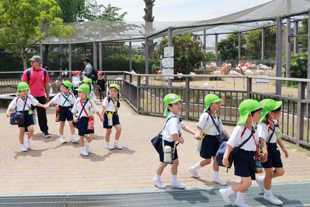 年中さんは春の遠足にバスに乗って動物園にいきました!バスに乗る前から「ゾウさんいるかなー?」「キリンさんは大きいかなー」とワクワクがいっぱいでした。先生やお友だちとたくさんの動物を見て,ビックリしたり,喜んだり。ステキな一日になりました。