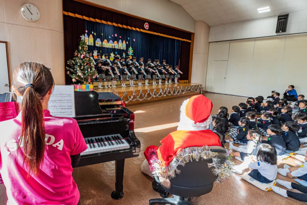 クリスマスにサンタさん来てくれるかなー?毎日のように楽しみにしていたお友だち。サンタさんに聞いてもらうために一生懸命,合唱や,合奏,鍵盤ハーモニカを練習していました。