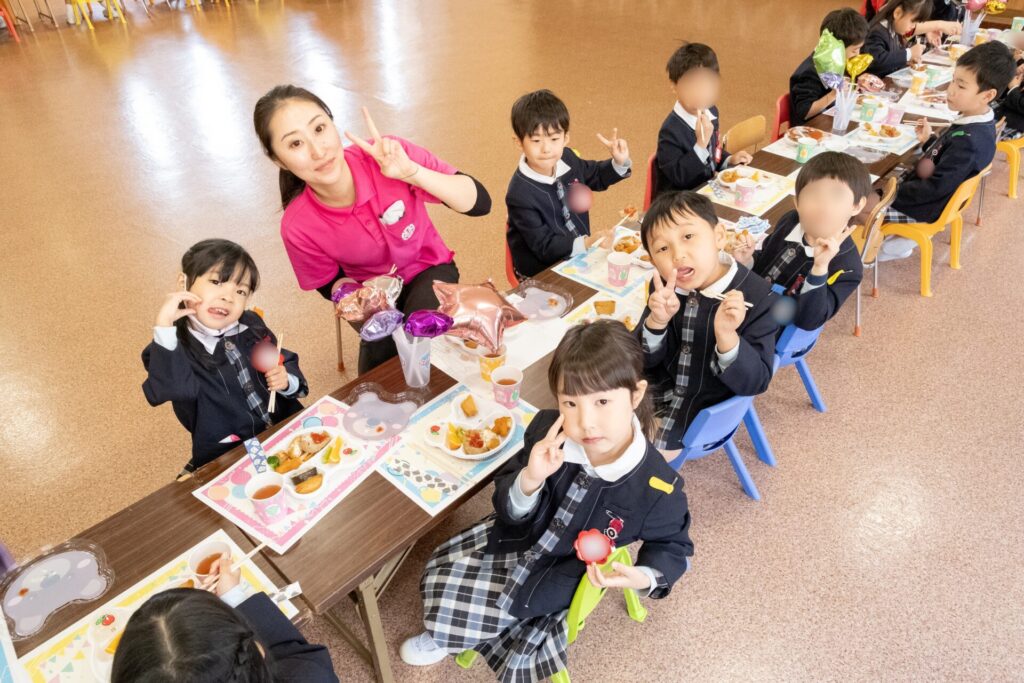 もうすぐ卒園するお友だちと先生たちで卒園パーティがありました。お別れ前の楽しいひと時。