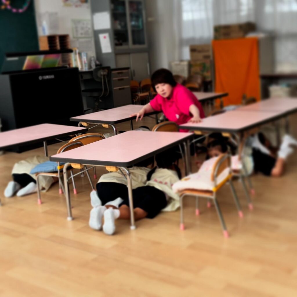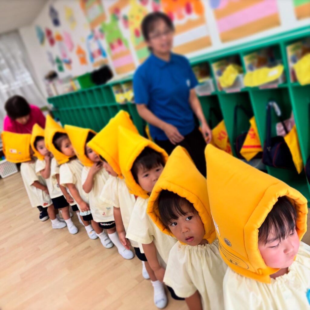9月1日は防災の日。石田幼稚園では2日に避難訓練がありました。自然災害への備えと意識向上を目的とし,様々な災害を想定とした訓練を行っています。迅速かつ的確な行動ができるよう,毎月取り組んでいます。