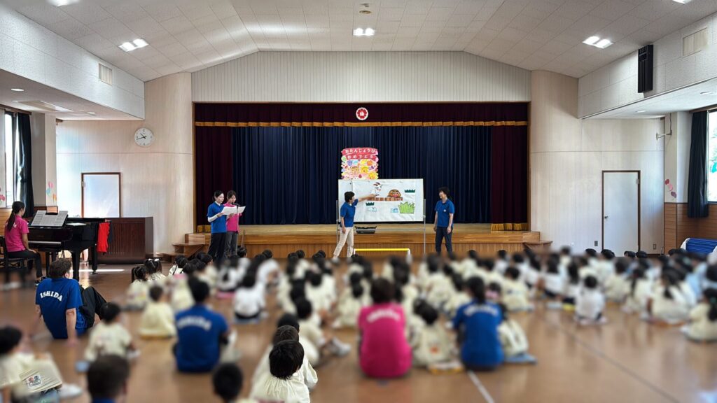 先生たちからのプレゼントは「三匹のヤギのガラガラドン」のパネルシアターでした。