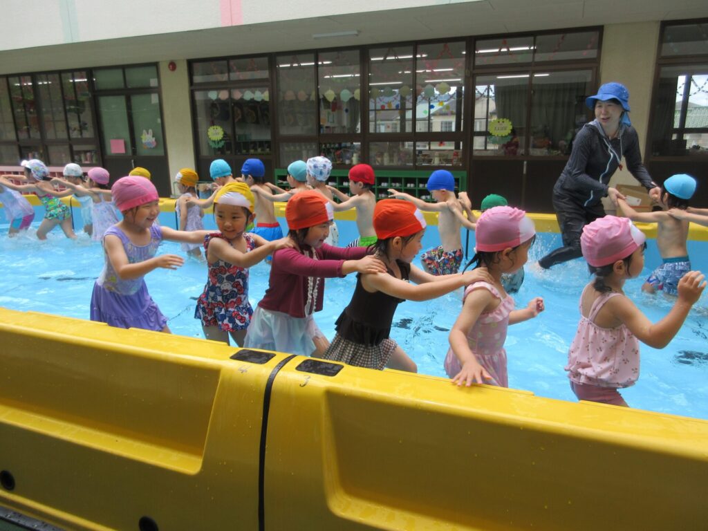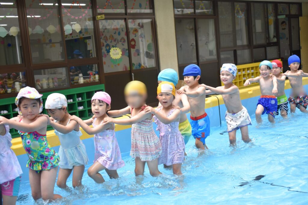 For the first half of the pool time, we started with some basic routines like getting ourselves wet from head to toe, dipping our bodies under the water, and even splashing water to our friends. But the most fun part of it was when we were walking, crawling, squat-walking, hopping around the pool together pretending like we were trains, crocodiles, crabs, and rabbits.