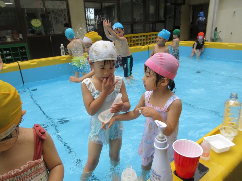 The second half was all about free play. We played with the plastic bottles and cups that we brought in last week and turned them into all sorts of fun toys. Others floated them like boats, others turned them into water showers and others turned them into water squirters. We poured, splashed, and laughed so much!