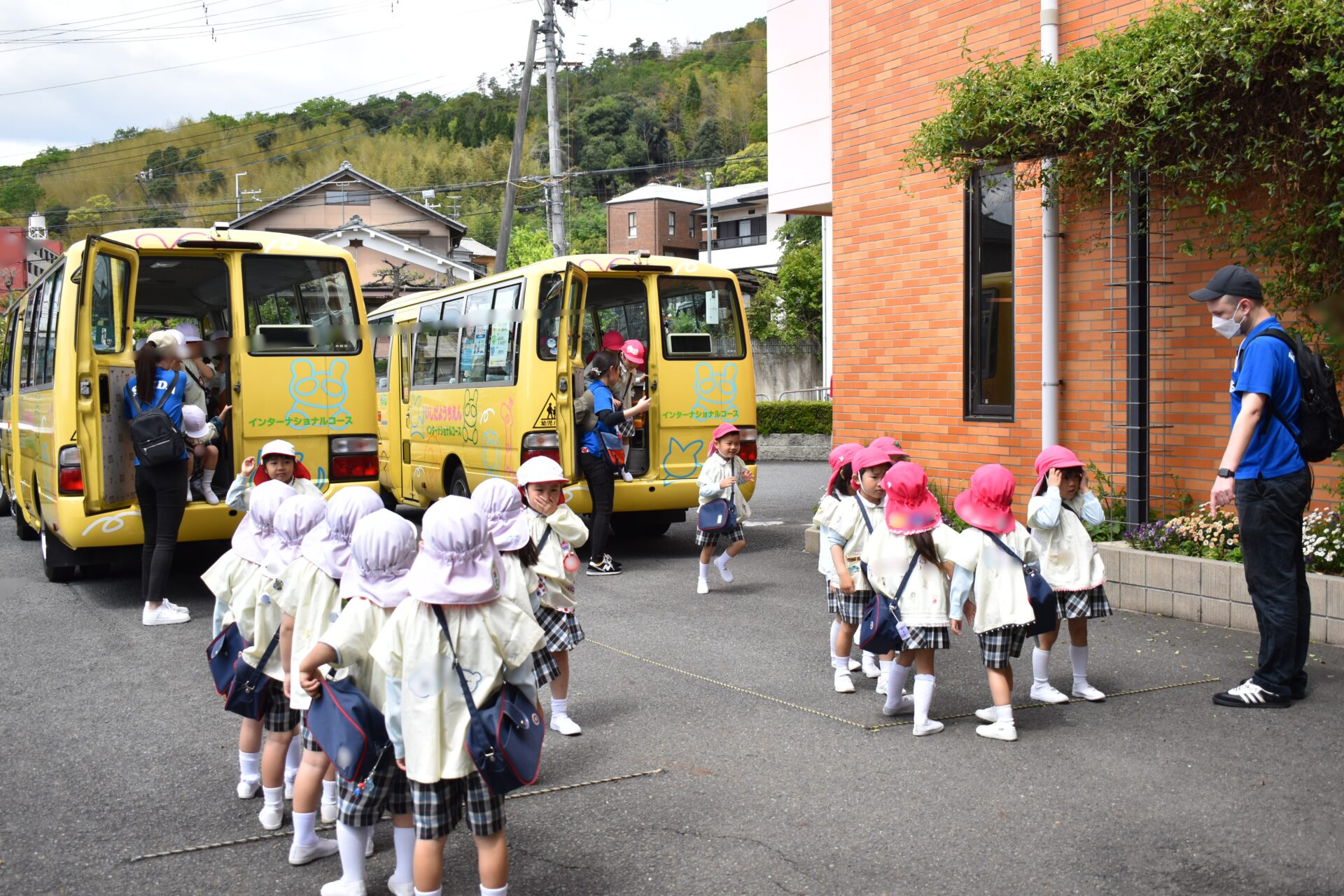 今月はバスの避難訓練です。年中,年長さんがお手本を見せてくれます。避…