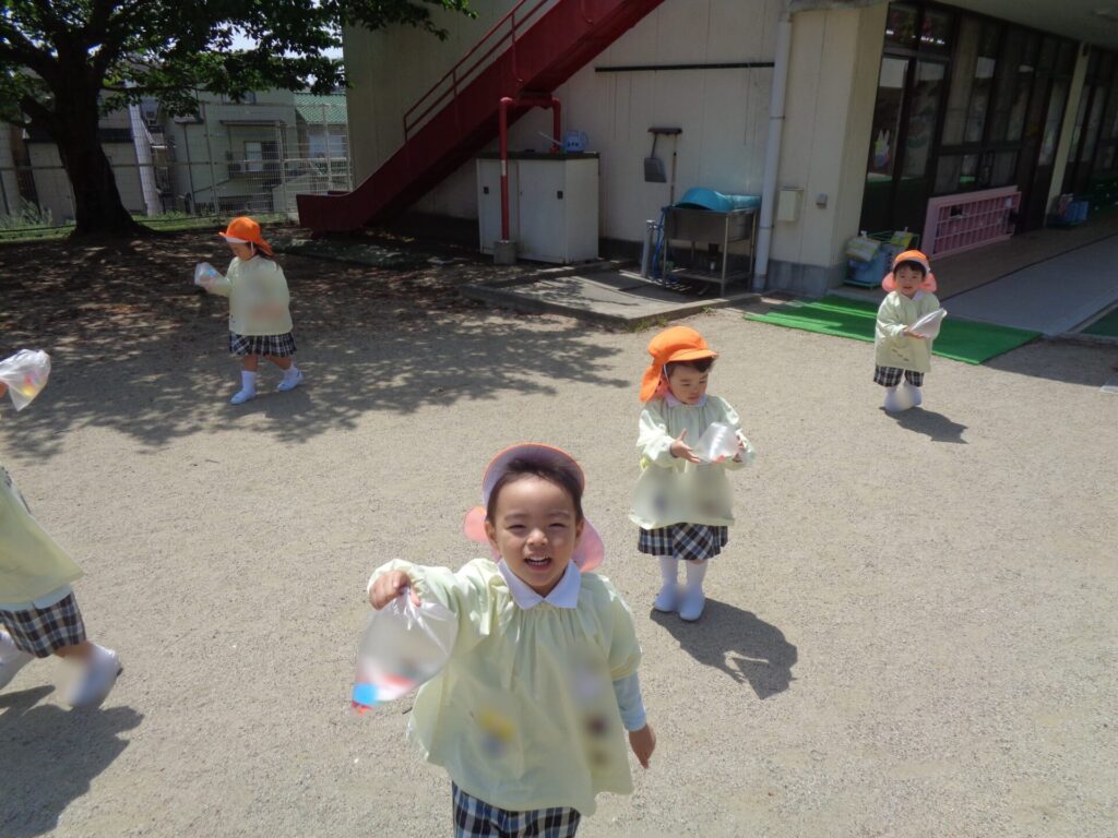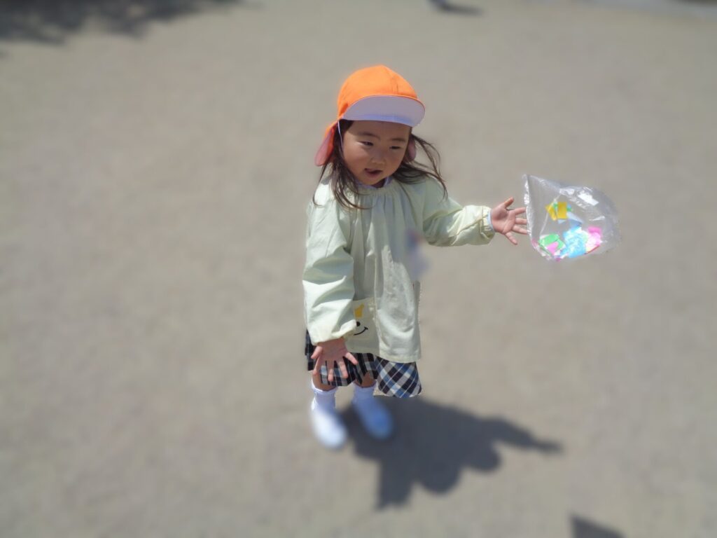 After cutting up the many colourful pieces of paper, we put them in plastic bags and made balloons! The weather was nice and we all did such a good job, so we were able to go outside and play with our new balloons. We had so much fun!