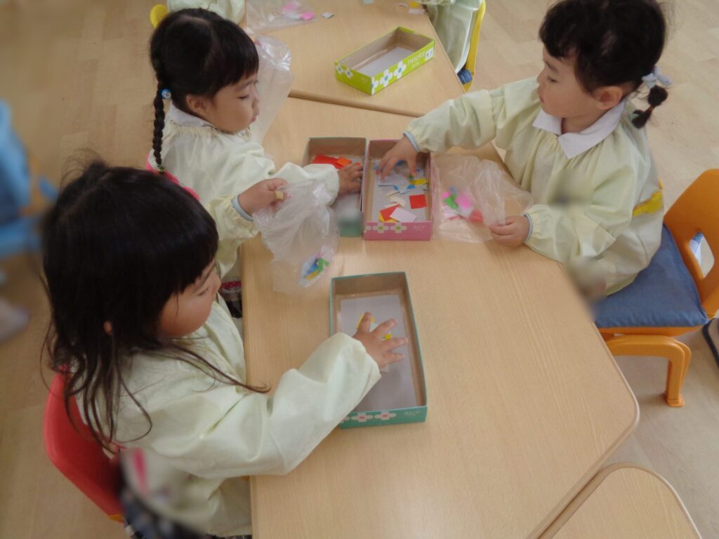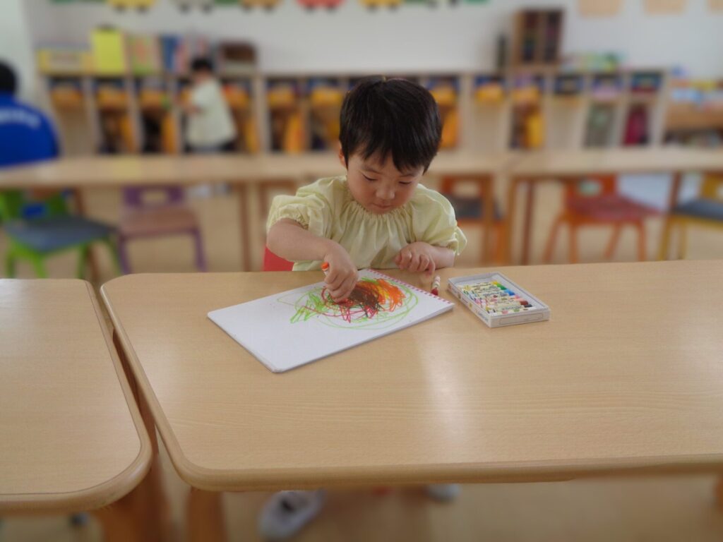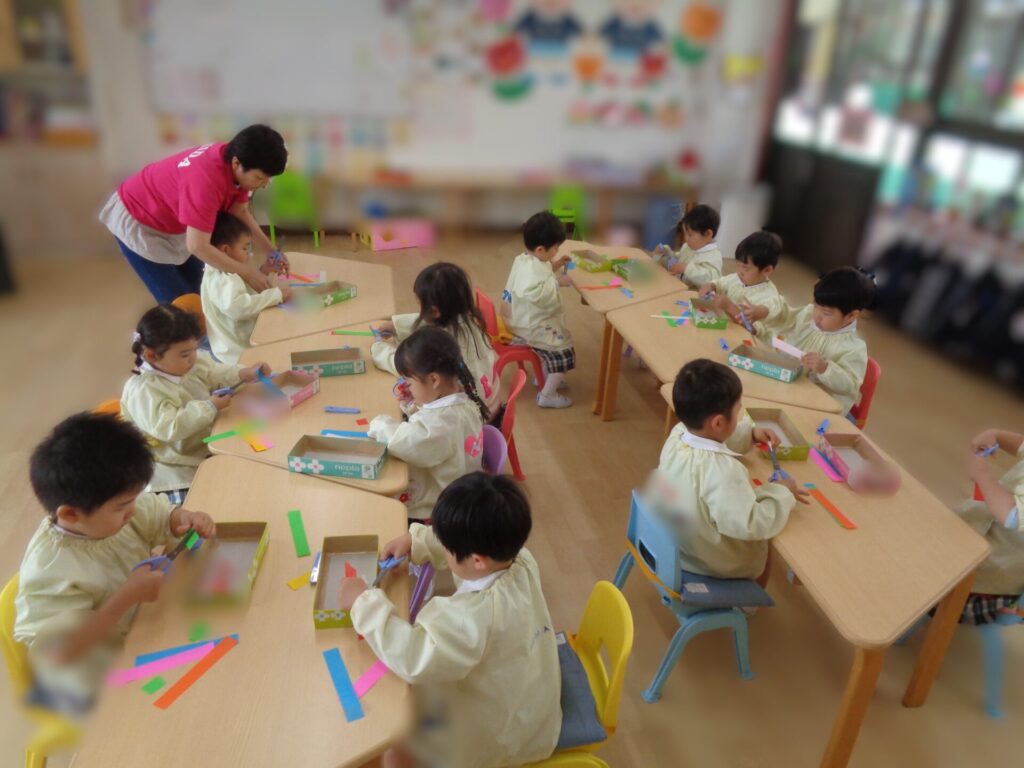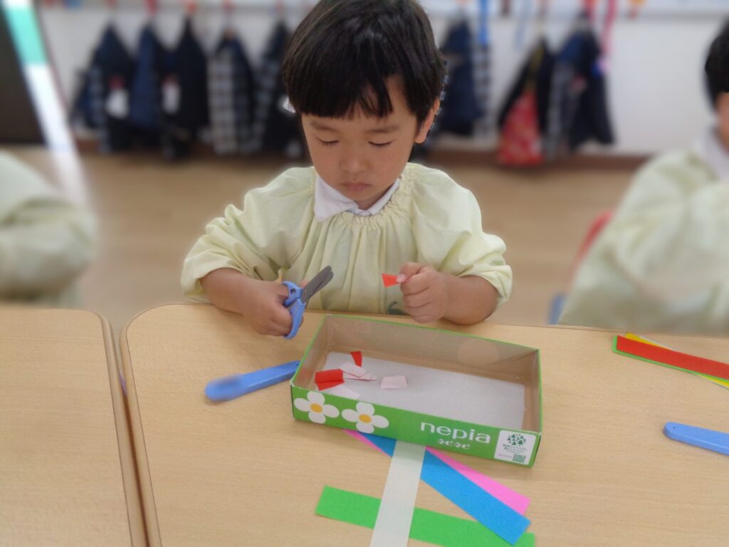 Things have been going very smoothly as usual in the Rabbit Class! We are all getting used to our daily life in Preschool and enjoying every day together with our friends and teachers. Recently, we have been learning how to use scissors for the first time. We made sure to listen to our teacher and practice the correct way to hold scissors, and we also promised to only cut paper, not to point our scissors at our friends, and put the cap back on our scissors as soon as we have finished using them.