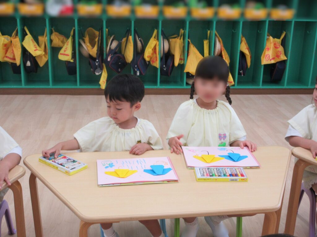 We also welcomed the rainy season with a fun origami craft—umbrellas! With great concentration, our little hands folded each corner precisely, glued them into our craftbooks, and added imaginative details like frogs, snails, raindrops, and people. Each one turned out uniquely beautiful.